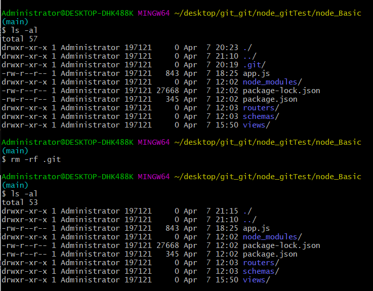 그리고 ls -al을 하면 .git이 들어있는 것을 확인 그것을 제거하는 방법은